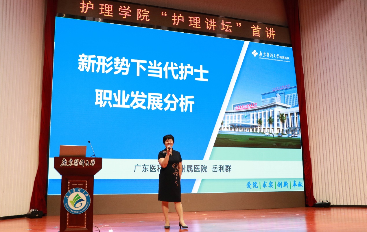 岳主任首先为同学们介绍了广东医科大学附属第一医院的基本情况、护理团队、学科建设等,然后从护理专业发展现状分析、新形势下护理专业发展方向、附院护理队伍发展方向等三方面详细分析了新形势下当代护士职业发展的多元可能。