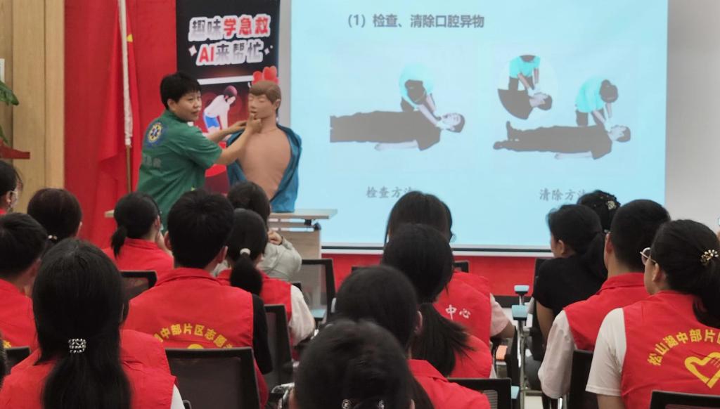 5月12日,正值国际护士节和防灾减灾日双节之际,广东医科大学伟德bv1946官网工会分会、内外科护理学教师党支部、星火急救队,携手松山湖中部片区党委在幸福花园阳光雨党群服务中心在幸福花园开展了一场别开生面的防灾减灾及应急救护专场培训。