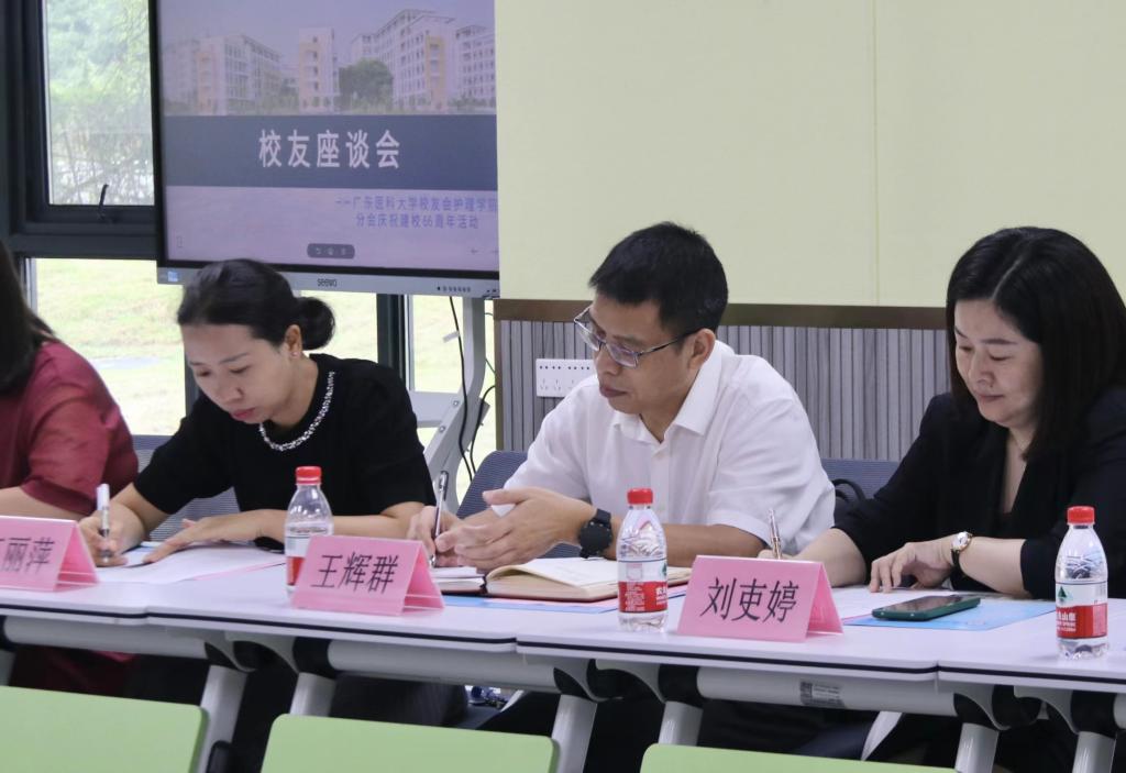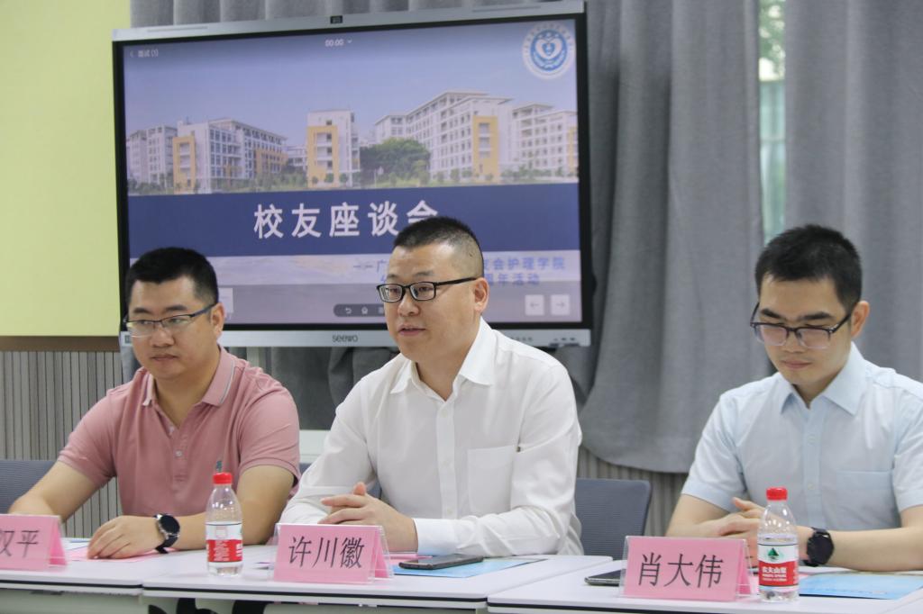 随后围绕校友会工作和学院发展,大家在校友信息数据收集、校友资源平台搭建、校友互帮互助和学院护理人才培养、教学科研、项目合作等方面建言献策,提出了很多有针对性的意见建议。任职于广州医附二医院护士长的许川徽会长提出校友会要及时收集关于校友工作的多方面情况,对校友提供相应支持,要夯实校友工作的抓手,加强校友工作实效,为2025年学校护理教育创办60周年献礼。从事金融创业的广州楚顺资本总裁谢志伟校友强调要进一步提升护理校友分会的影响力和凝聚力,让更多的校友积极主动加入,为学院发展所需贡献校友所能。来自广州妇女儿童医院的梁静雯校友结合工作经历,从科研创新合作、资源共享整合等方面提出促进学院发展的建议。从中肿离职创业的王曦校友提出搭建线上校友平台加强校友资源信息共享以及加强学生综合素质能力的培养。有过校友会运维工作经历的詹鸿钧校友提出校友终身学习计划和加强校友联谊工作以及校友工作策划等建议。学院领导和老师对校友们利用周末冒着大雨回校相聚表示感谢,对加强校友工作,促进校友和学院发展充满了期待。