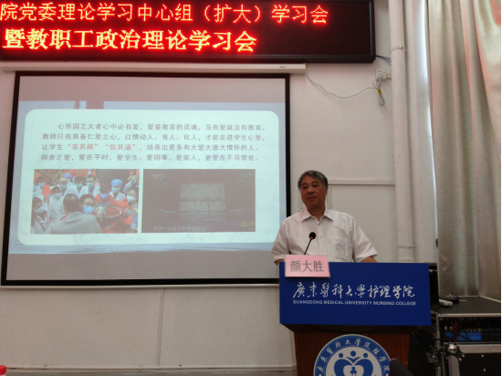 为全面贯彻习近平总书记关于教育的重要论述,引导学院教师更好的理解育人大先生的丰富内涵以及如何争当新时代育人大先生。6月23日下午,伟德bv1946官网在党员活动室召开党委理论学习中心组学习会暨教职工政治理论学习,会议邀请学校关心下一代工作委员会颜大胜副主任作了题为“争当新时代育人大先生”的主题报告。会议由学院党委副书记许崇泰主持,学院全体教职工及毕业生学生党员代表到场参会