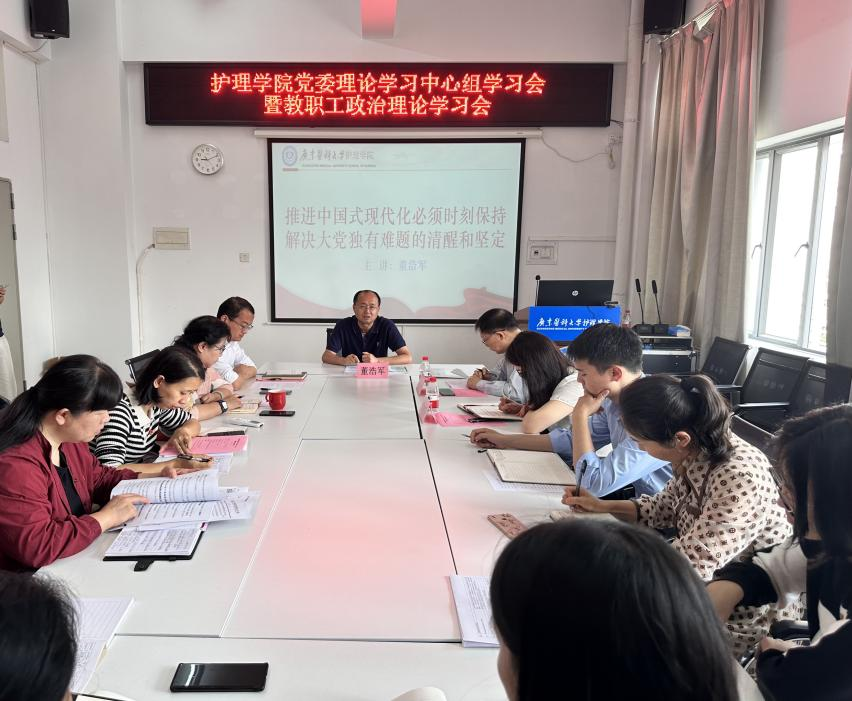为深入学习宣传贯彻党的二十大精神,把全院教职工的思想统一到党的二十大精神上来,根据学校《深入学习宣传贯彻党的二十大精神实施方案》(党〔2022〕27号)的要求,4月12日上午,伟德bv1946官网在316党员活动室召开党委理论学习中心组(扩大)学习会暨教职工政治理论学习会,会议邀请了马克思主义学院董浩军副院长作题为“推进中国式现代化必须时刻保持解决大党独有难题的清醒和坚定”的报告。会议由伟德bv1946官网党委副书记许崇泰主持。图书馆党总支部李子丰书记、梁建菲委员到场巡听旁听,伟德bv1946官网全体教职工参加会议。