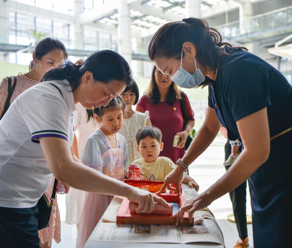 随后,全体党员同志参加红色手作活动。活动中,讲解员耐心讲解手袋的印制步骤及要点,党员同志们纷纷亲手印制“永远跟党走”、“为人民服务”等红色主题,为党的生日献礼。