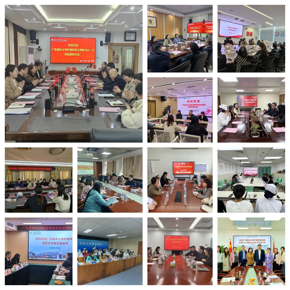 为强化实践教学过程管理和质量监控,提高实习教学质量,深入推进护理专业认证工作,伟德bv1946官网由领导班子成员分别带领由督导专家、教研室主任、骨干教师、辅导员组成的6个检查小组,于1月2日-16日分赴学校附属医院、附属东莞第一医院、顺德妇女儿童医院、附属松山湖中心医院、广东省人民医院、中山大学附属肿瘤医院、中山大学附属第一医院、中山大学附属第三医院、北京大学深圳医院、深圳市妇幼保健院、东莞市第八人民医院、惠州市中心人民医院、惠州市第一人民医院等13家医院开展实习检查工作。