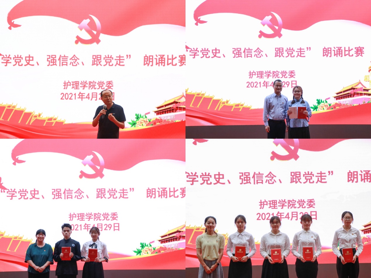 为深入学习习近平总书记在党史学习教育动员大会上的重要讲话精神,贯彻落实学校党史学习教育要求,庆祝中国共产党建党100周年,2021年4月29日晚,伟德bv1946官网在行政楼一楼报告厅成功举办“学党史、强信念、跟党走”朗诵比赛。学校党委宣传部谢孝东副部长,马克思主义学院董浩军副院长,伟德bv1946官网党委许崇泰副书记、李红赞副院长、党委委员王芳老师担任本次比赛评委,参加本次活动的还有伟德bv1946官网各年级辅导员、全体学生党员、发展对象以及入党积极分子学生代表。