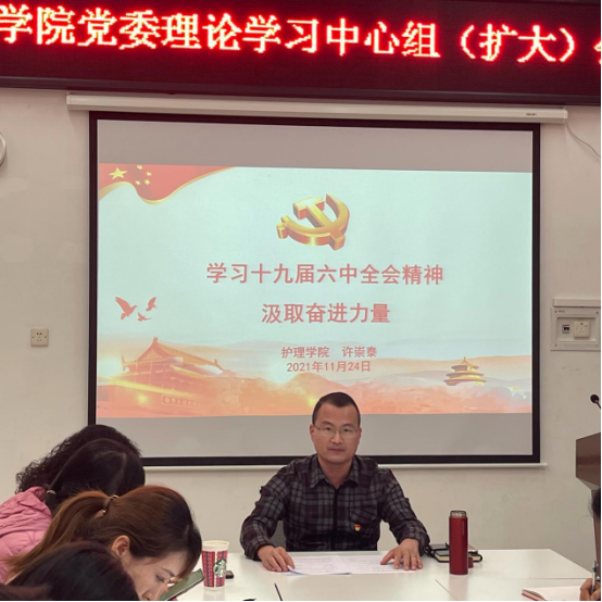 许崇泰副书记指出,今年是建党100周年,也是学院十四五的开局之年,我院护理学硕士学位授权点已经获批,但还有申报国家一流专业、专业认证、人才队伍建设、学科建设、教学质量提升等很多方面的工作需要全院师生花大力气去努力、去攻坚。希望各党支部要积极行动起来,发挥组织作用,深入学习贯彻党的十九届六中全会精神;要坚持学在前、做在前,全面系统学习领会全会精神、丰富内涵和核心要义,牢牢把握正确的方向、导向;要聚焦主责抓学习、围绕主业抓发展,强化理论武装、推进实践创新,奋力推动学院的高质量发展。(文/李瑞琦图/贾征)