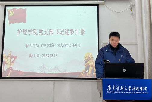 首先,伟德bv1946官网护本学生第一党支部书记李瑞琦结合2023年的工作要点。从主题教育、以“七个有力”全面推进支部建设、党建工作成效三个方面展开,重点讲述了学生第一党支部和第二党支部在教育党员、管理党员、监督党员、组织师生、宣传师生、凝聚师生、服务师生七个方面的有力措施和取得的成效。