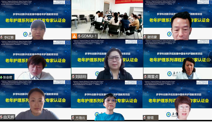 2022年5月7日上午,我校在伟德bv1946官网专科护理会议室在线召开了老年护理系列课程开发专家认证会议。会议邀请了来自锦州医科大学、广东药科大学、中山大学附属第一医院、中山大学孙逸仙纪念医院和东莞市第八人民医院的专家学者以及来自广东医科大学的领导和老师们,对我院GeNEdu项目《老年护理系列课程》中的六门课程进行论证。