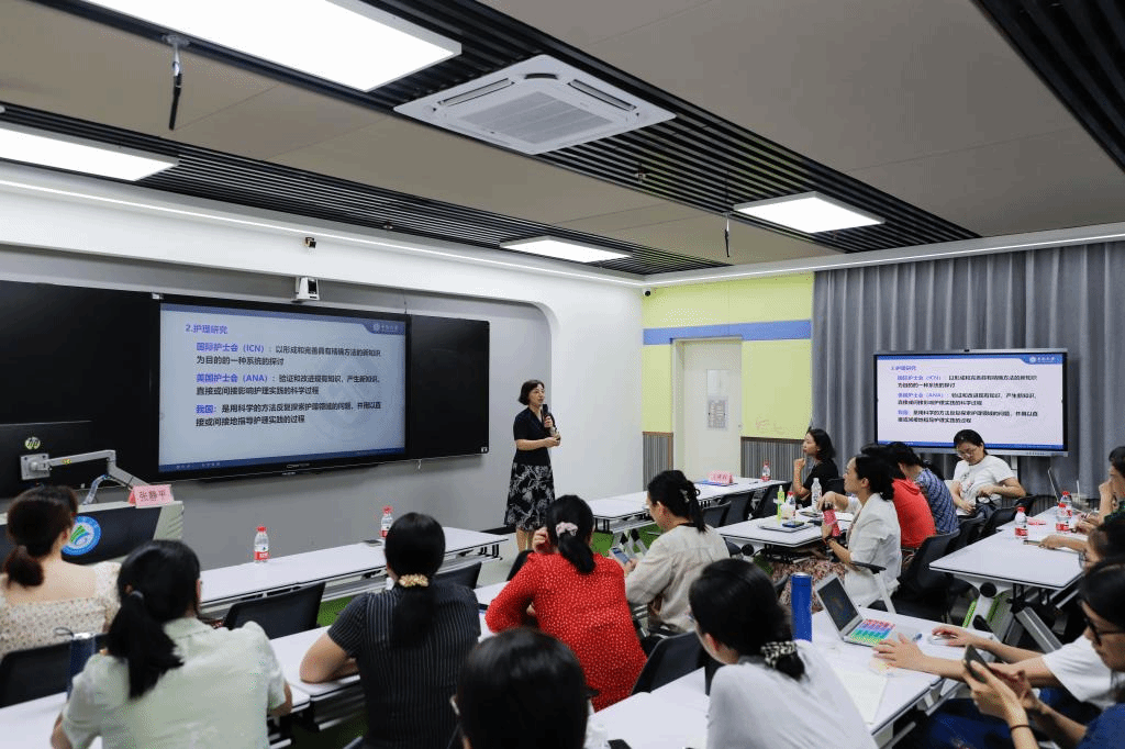 开幕式后,张静平教授用生动幽默的语言、深入浅出从护理科研的基本概念、如何建立研究问题、护理科研热点等方面阐述了护理科研选题的相关知识。近三个小时的课程,学员们全神贯注,聚精会神。下午,中南大学湘雅三院谢建飞教授从不同研究设计的设计要点,适用范围,注意问题,并运用具体的案例呈现不同研究设计的应用。课后,学员们纷纷表示教授们的讲座内容丰富且实用性强,对于提升科研能力具有很大帮助。